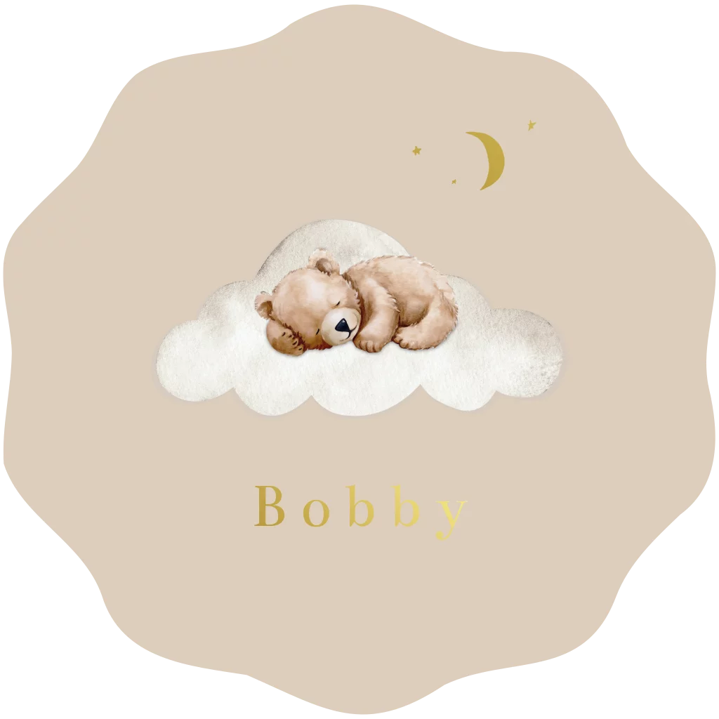 Lief geboortekaartje in een mooie ronde golfjes vorm met een schattig aqaurel slapend knuffelbeertje op een wolk. De naam en maan met sterretjes worden gedrukt in goudfolie voor dat extra 'wouw' effect. Pas de achtergrondkleur gemakkelijk naar wens aan in de handige editor. Heb je hulp nodig met opmaken of wil je dit ontwerp in een ander vorm of formaat kaart, stuur dan een berichtje - wij helpen je graag!