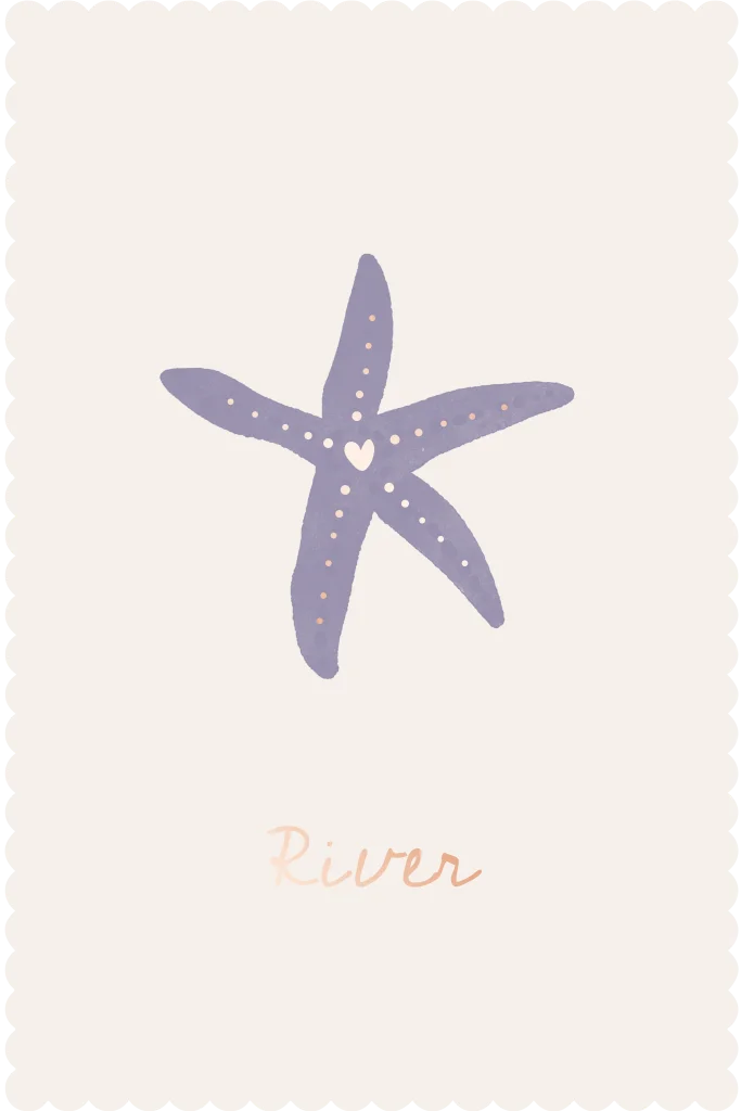 Lief geboortekaartje in mooie lila kleur in een zeethema. De naam en bolletjes/hartje details staan in rosegoudfolie, deze kun je vervangen door een gewone kleur, andere folie of hoogglans. Je kunt de zeester in elke kleur zetten die je zelf wilt. Wil je dit kaartje in een andere vorm / dubbele kaart? Laat het ons dan weten, wij helpen je graag!