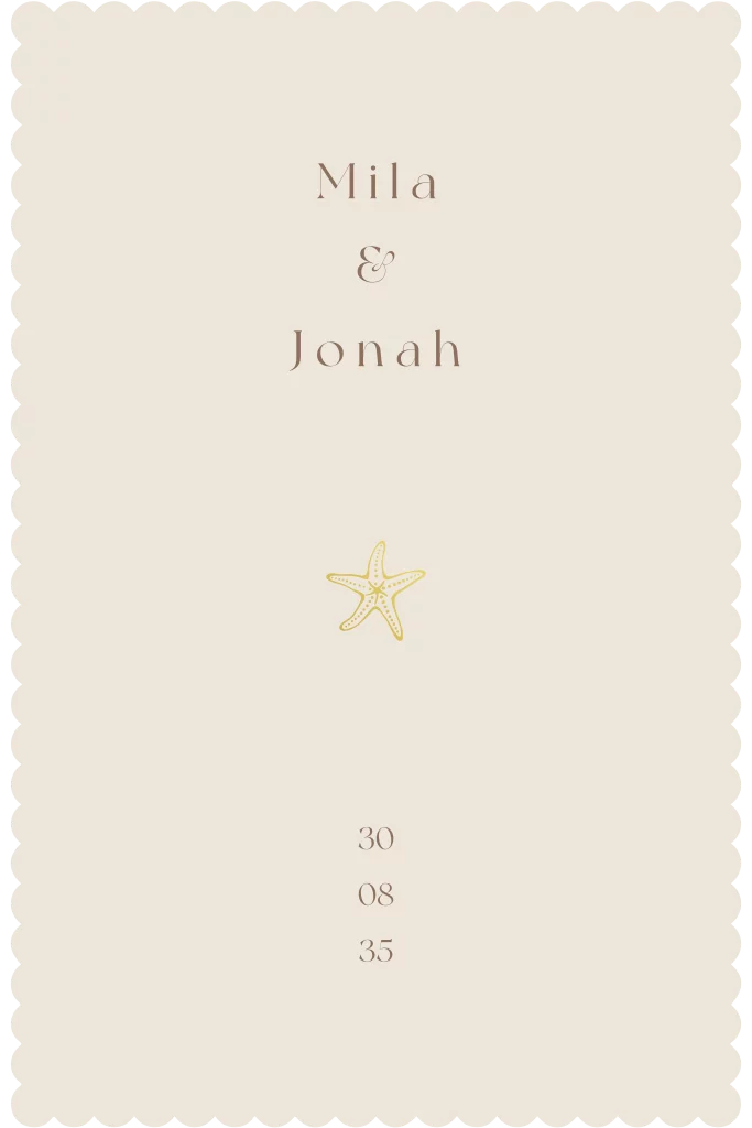 Heel mooie trouwkaart met een golfjesrand in beige zandkleuren en goudfolie. Heb je hulp nodig of kom je er niet uit? Stuur ons een berichtje en wij helpen je graag!