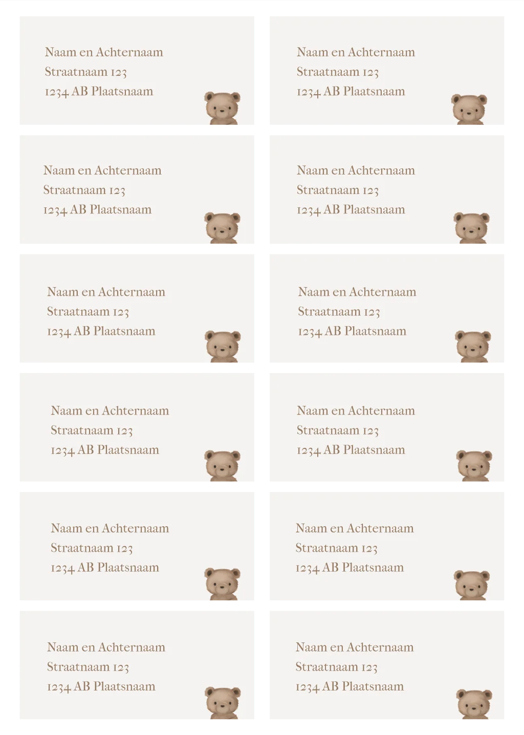 Adresstickers aanpasbaar 97x45mm knuffelbeertje