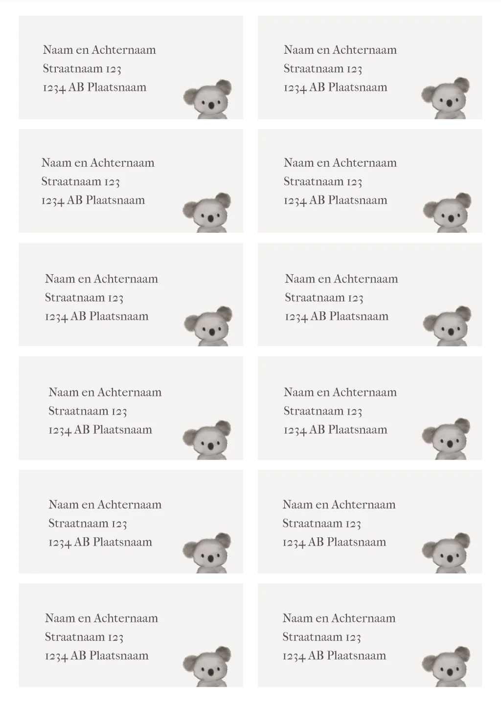 Adresstickers aanpasbaar 97x45mm knuffelkoala