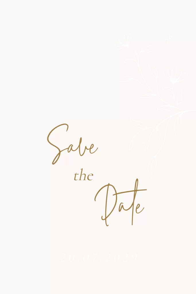 Save the date trouwkaart met minimalistische bloem en goudfolie