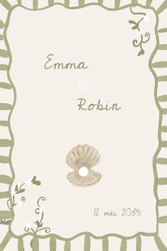 Prachtige trendy trouwkaart met mooie handgetekende aquarel trouwitems die je uit de editor nog kunt vervangen/bijvoegen. Liever een ander formaat of dubbele kaart? Stuur ons een berichtje en wij helpen je graag verder!
